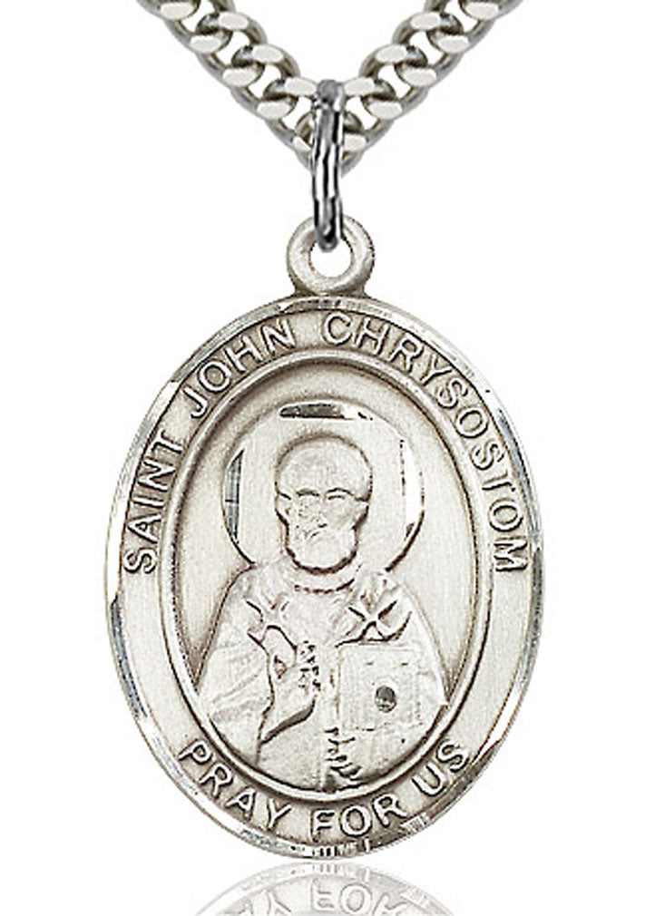 Saint John Chrysostom Pendant is made of sterling silver and is approximately the size of a quarter.