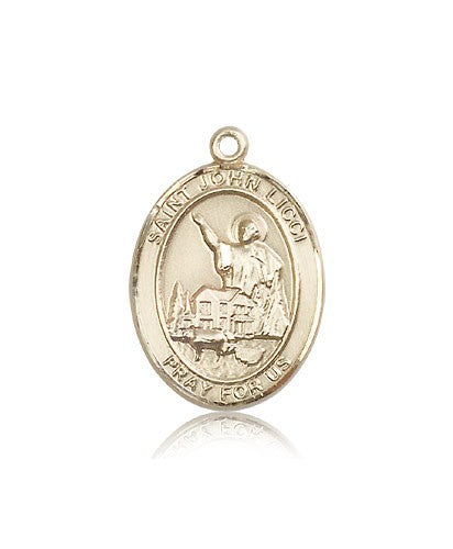 St. John Licci Medal This St. John Licci Pendant is made of 14 Karat Gold and is approximately the size of a quarter. The jewelry pendant is sold individually and does not come with a chain. All medals are gift boxed in a beautiful blue velvet hinged jewelry gift box.