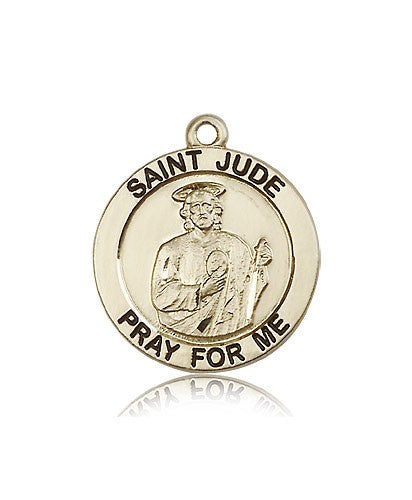 This St. Jude Medal is made of 14 Karat Gold. The jewelry pendant is sold as pictured and does not come with a chain. All medals are gift boxed in a light blue velvet jewelry box ready for gift giving.