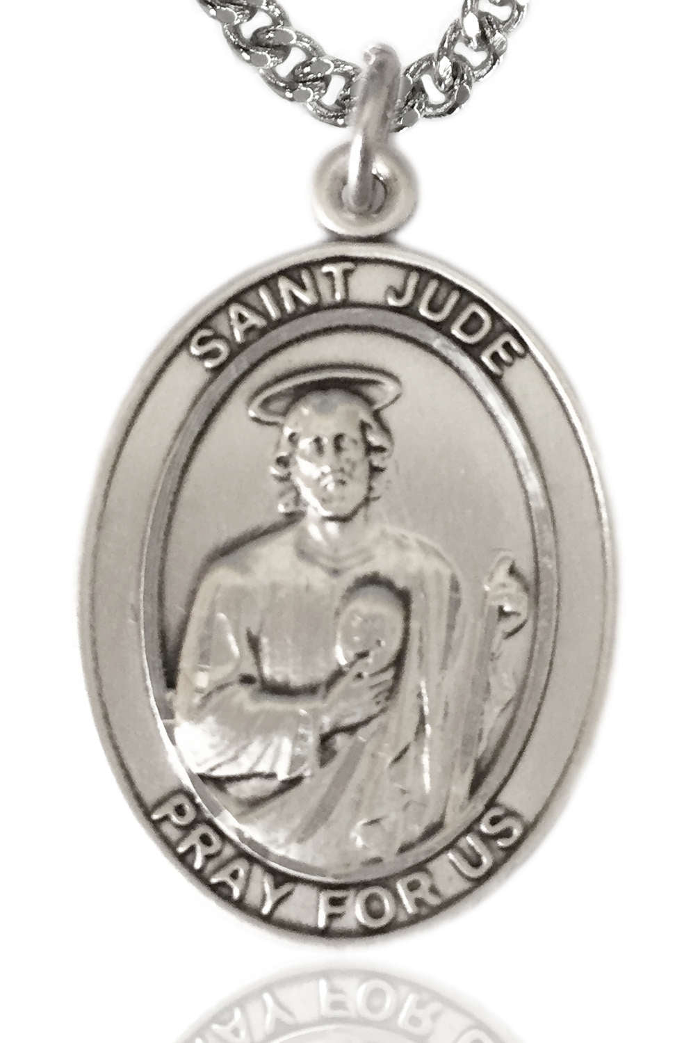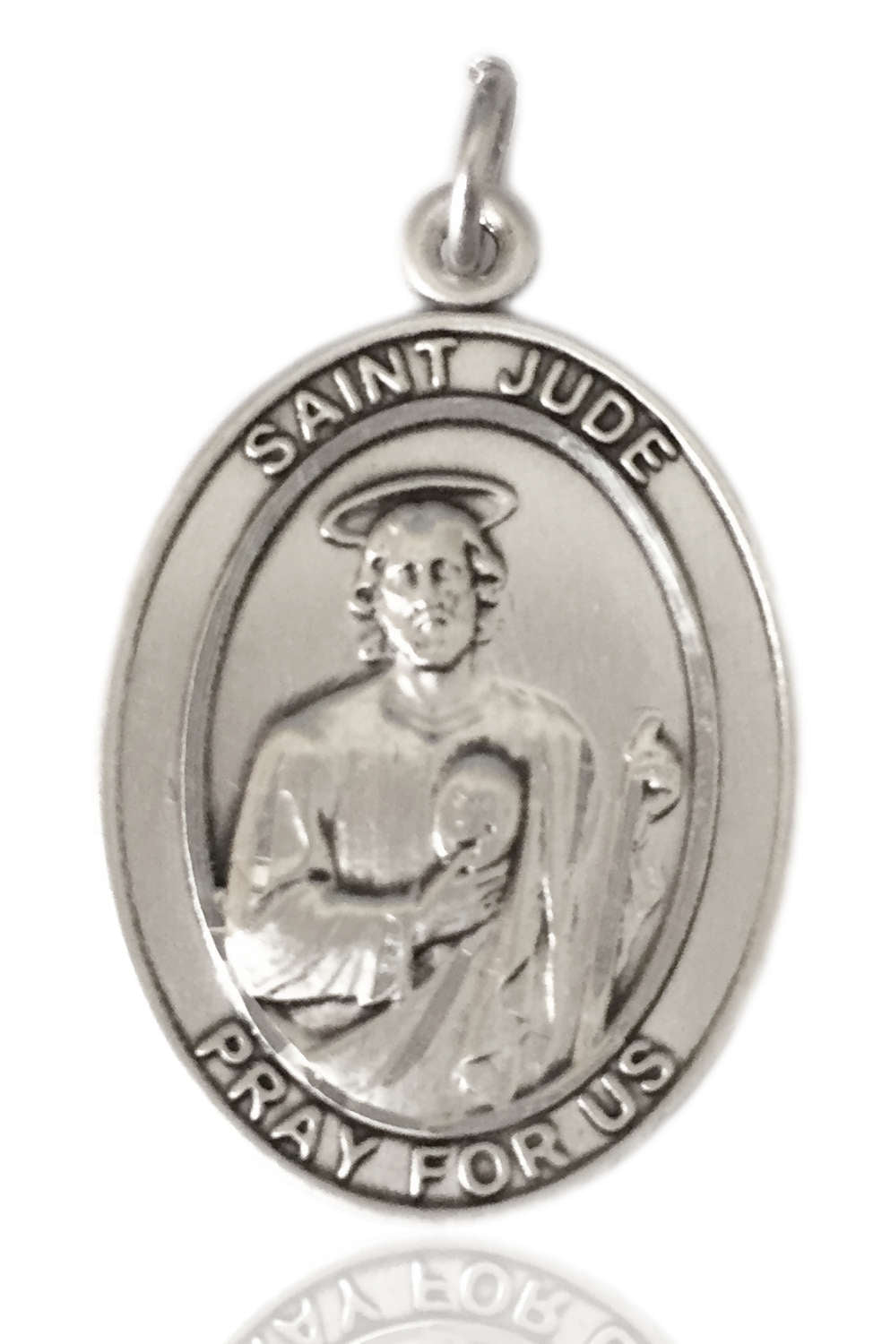 This Saint Jude Thaddeus Pendant is made of sterling silver and is approximately the size of a quarter.