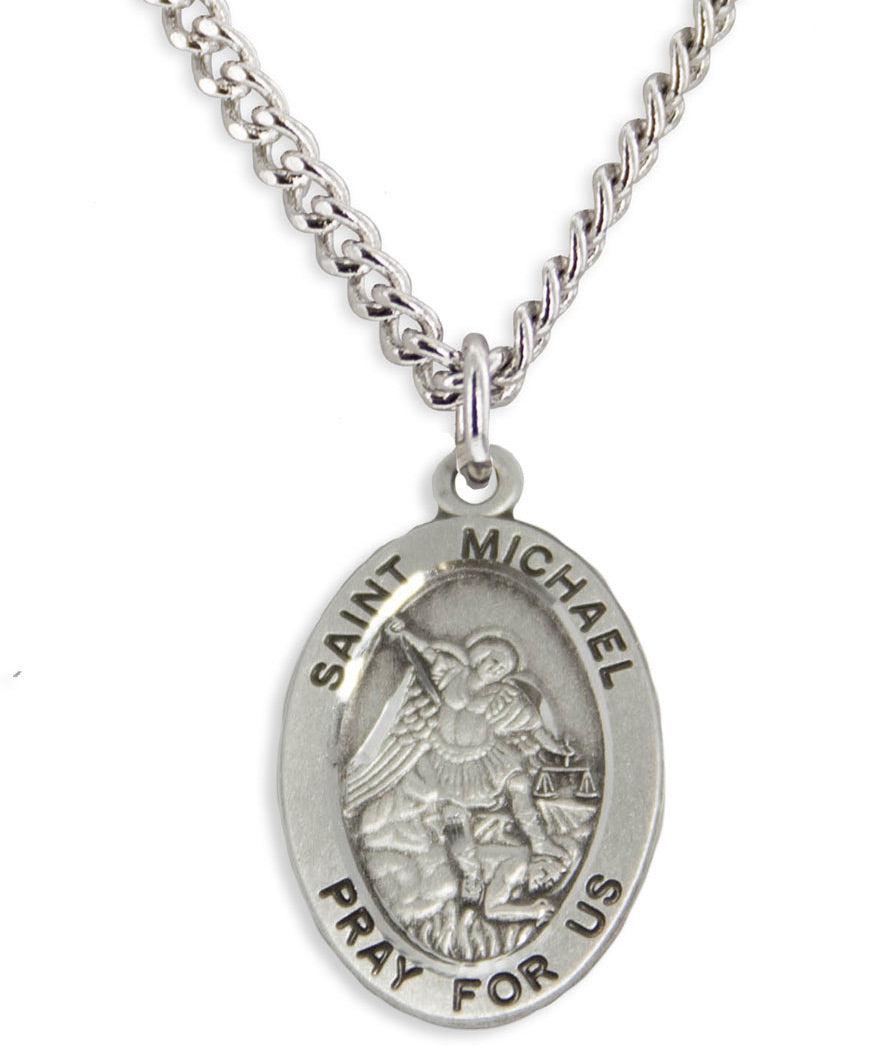 Boy's Saint Michael Necklace Oval Sterling Silver with Chain - 20" 2.2mm Stainless Steel Chain with Clasp