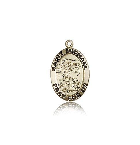 This St. Michael the Archangel Medal is made of 14 Karat Gold. The jewelry pendant is sold as pictured and does not come with a chain. All medals are gift boxed in a light blue velvet jewelry box ready for gift giving.