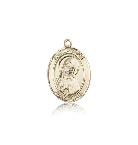 This St. Monica Pendant is made of 14 Karat Gold and is approximately the size of a nickel. The jewelry pendant is sold individually and does not come with a chain. All medals are gift boxed in a beautiful blue velvet hinged jewelry gift box.