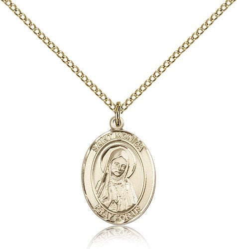 This St. Monica Pendant is made of gold filled and is approximately the size of a nickel. The jewelry pendant is paired with an 18 inch gold filled light curb chain as pictured. All medals are gift boxed in a beautiful blue velvet hinged jewelry gift box.