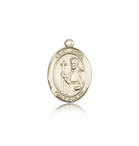 This St. Regis Pendant is made of 14 Karat Gold and is approximately the size of a nickel. The jewelry pendant is sold individually and does not come with a chain. All medals are gift boxed in a beautiful blue velvet hinged jewelry gift box.