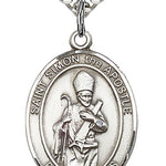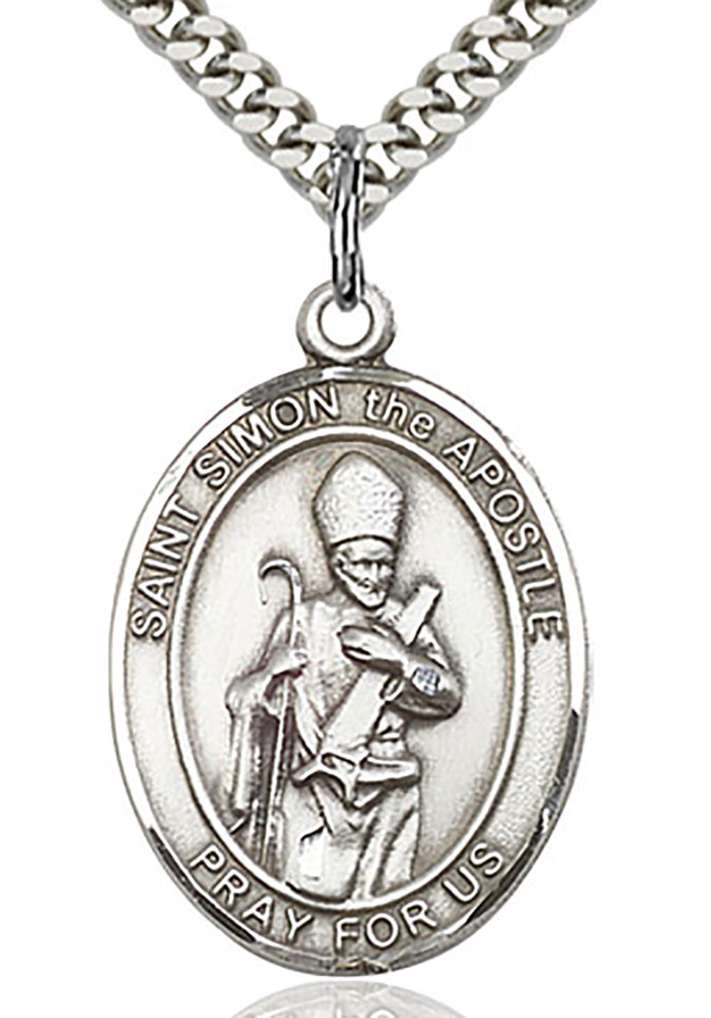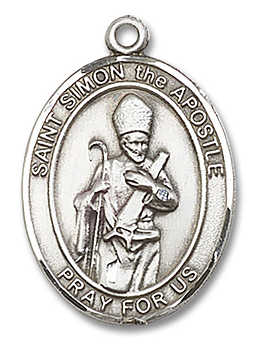 This St. Simon Pendant is made of sterling silver and is approximately the size of a quarter.