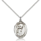 This St. Aidan of Lindesfarne Pendant is made of sterling silver and is approximately the size of a nickel. The jewelry pendant is paired with an 18 inch sterling silver light curb chain as pictured. All medals are gift boxed in a beautiful blue velvet hinged jewelry gift box.