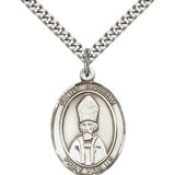 This St. Anselm of Canterbury Pendant is made of sterling silver and is approximately the size of a quarter. The jewelry pendant is paired with a 24 inch stainless steel heavy curb chain as pictured. All medals are gift boxed in a beautiful blue velvet hinged jewelry gift box.