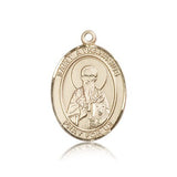 This St. Athanasius Pendant is made of 14 Karat Gold and is approximately the size of a quarter. The jewelry pendant is sold individually and does not come with a chain. All medals are gift boxed in a beautiful blue velvet hinged jewelry gift box.