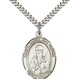 This St. Basil the Great Pendant is made of sterling silver and is approximately the size of a quarter. The jewelry pendant is paired with a 24 inch stainless steel heavy curb chain as pictured. All medals are gift boxed in a beautiful blue velvet hinged jewelry gift box.