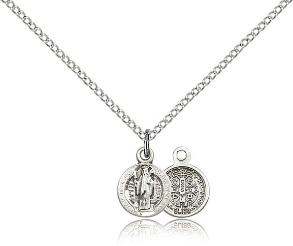 This St. Benedict Medal is paired with an 18 inch sterling silver lite curb chain as pictured. All medals are gift boxed in a light blue velvet jewelry box ready for gift giving.