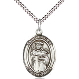 An oval shaped, dime size pendant with an image of St. Casimir of Poland in the center. There is a selection of chains to choose from.