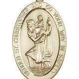 This St. Christopher Medal is made of 14 Karat Gold. The jewelry pendant is sold as pictured and does not come with a chain. All medals are gift boxed in a light blue velvet jewelry box ready for gift giving.
