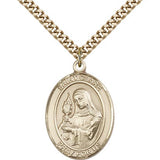 St. Clare of Assisi Medal, Gold Filled, Large - 24" 2.4mm Gold Plated Chain + Clasp