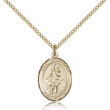 St. Cornelius Medal This St. Cornelius Pendant is made of gold filled and is approximately the size of a nickel. The jewelry pendant is paired with an 18 inch gold filled light curb chain as pictured. All medals are gift boxed in a beautiful blue velvet hinged jewelry gift box.