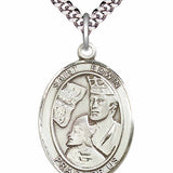 - Medal with 24" rhodium plated brass heavy curb chain with lobster clasp
