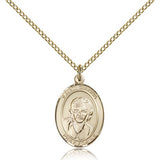 This St. Gianna Pendant is made of gold filled and is approximately the size of a nickel. The jewelry pendant is paired with an 18 inch gold filled light curb chain as pictured. All medals are gift boxed in a beautiful blue velvet hinged jewelry gift box.