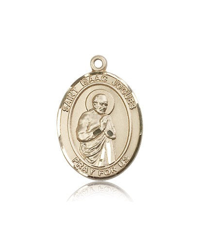 St. Isaac Jogues Medal This St. Isaac Jogues Pendant is made of 14 Karat Gold and is approximately the size of a quarter. The jewelry pendant is sold individually and does not come with a chain. All medals are gift boxed in a beautiful blue velvet hinged jewelry gift box.
