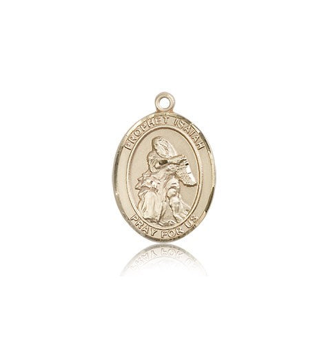 St. Isaiah Medal This St. Isaiah Pendant is made of 14 Karat Gold and is approximately the size of a nickel. The jewelry pendant is sold individually and does not come with a chain. All medals are gift boxed in a beautiful blue velvet hinged jewelry gift box.