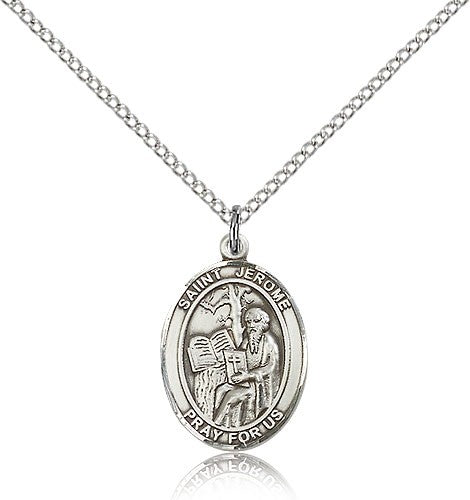 St. Jerome Medal, Sterling Silver, Medium - 18" 1.2mm Sterling Silver Chain + Clasp