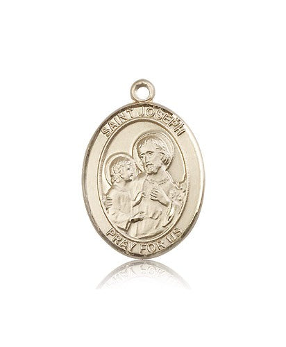 St. Joseph Medal This St. Joseph Pendant is made of 14 Karat Gold and is approximately the size of a quarter. The jewelry pendant is sold individually and does not come with a chain. All medals are gift boxed in a beautiful blue velvet hinged jewelry gift box.