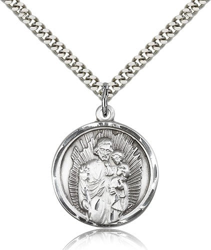 This St. Joseph Medal is paired with a 24 inch stainless steel heavy curb chain as pictured. All medals are gift boxed in a light blue velvet jewelry box ready for gift giving.