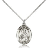 This St. Louis Pendant is made of sterling silver and is approximately the size of a nickel. The jewelry pendant is paired with an 18 inch sterling silver light curb chain as pictured. All medals are gift boxed in a beautiful blue velvet hinged jewelry gift box.