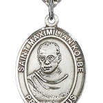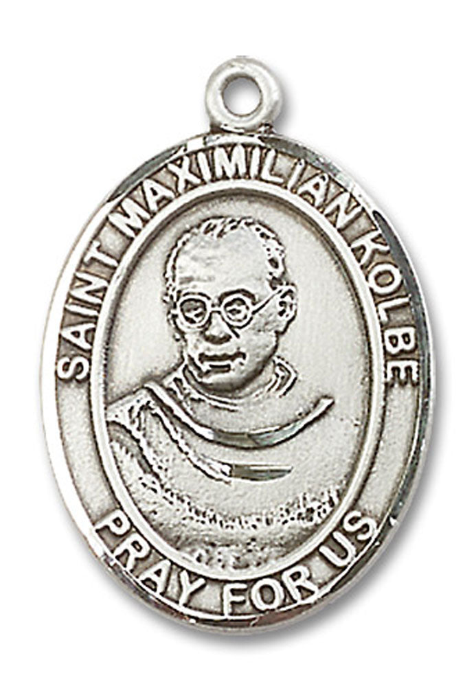 St. Maximilian Kolbe Medal This St. Maximilian Kolbe Pendant is made of sterling silver and is approximately the size of a quarter.