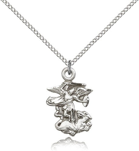 This St. Michael the Archangel Medal is paired with an 18 inch sterling silver lite curb chain as pictured. All medals are gift boxed in a light blue velvet jewelry box ready for gift giving.