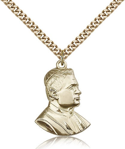 Saint Pius X Medal, Gold Filled - 24" 2.4mm Gold Plated Endless Chain