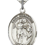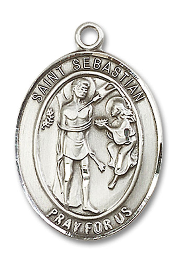 This St. Sebastian Pendant is made of sterling silver and is approximately the size of a quarter.