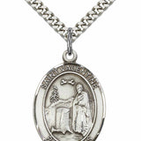 Men's Pewter Oval St. Valentine of Rome Medal - 24" 2.4mm Rhodium Plate Chain + Clasp