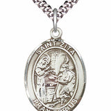 Men's Pewter Oval St. Zita Medal - 24" 2.4mm Rhodium Plate Chain + Clasp