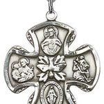 This 5 Way Cross Pendant features the Sacred Heart, St. Joseph, St. Christopher, the Miraculous Symbol, and the Holy Spirit.