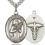 Men's Sterling Silver Saint Agatha Oval Medal with Caduceus