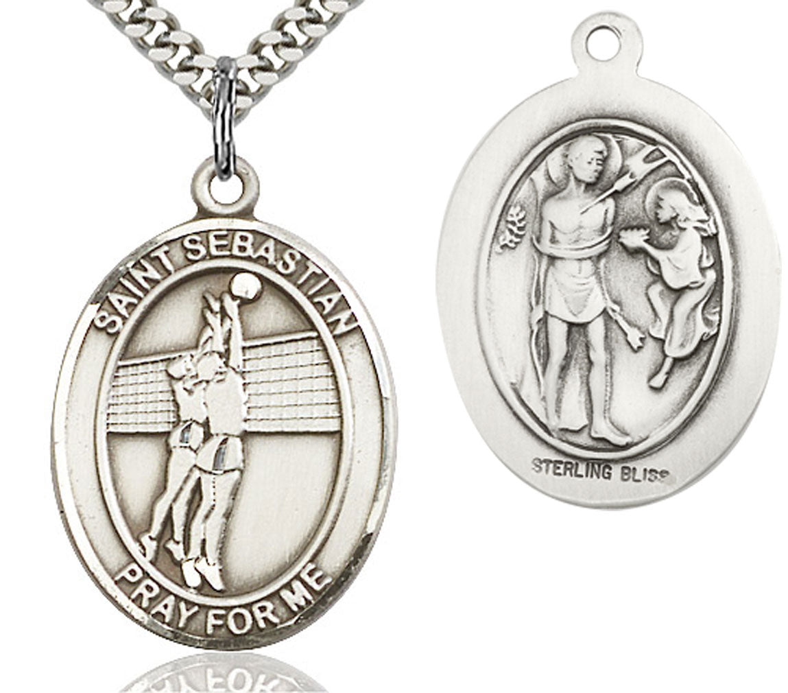 St. Sebastian Volleyball Medal, Sterling Silver, Large