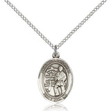 St Christopher Karate Medal This St Christopher Karate Pendant is made of sterling silver and is approximately the size of a nickel. The jewelry pendant is paired with an 18 inch sterling silver light curb chain as pictured. All medals are gift boxed in a beautiful blue velvet hinged jewelry gift box.