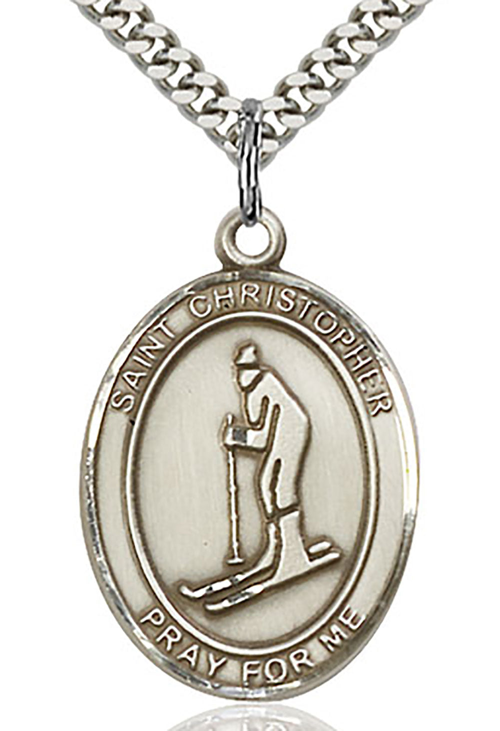 St. Christopher Skiing Medal, Sterling Silver, Large
