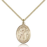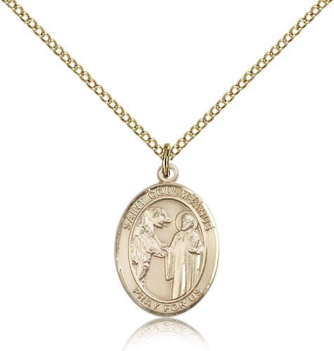 St. Columbanus Medal This St. Columbanus Pendant is made of gold filled and is approximately the size of a nickel. The jewelry pendant is paired with an 18 inch gold filled light curb chain as pictured. All medals are gift boxed in a beautiful blue velvet hinged jewelry gift box.