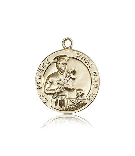 This St. Gerard Medal is made of 14 Karat Gold. The jewelry pendant is sold as pictured and does not come with a chain. All medals are gift boxed in a light blue velvet jewelry box ready for gift giving.
