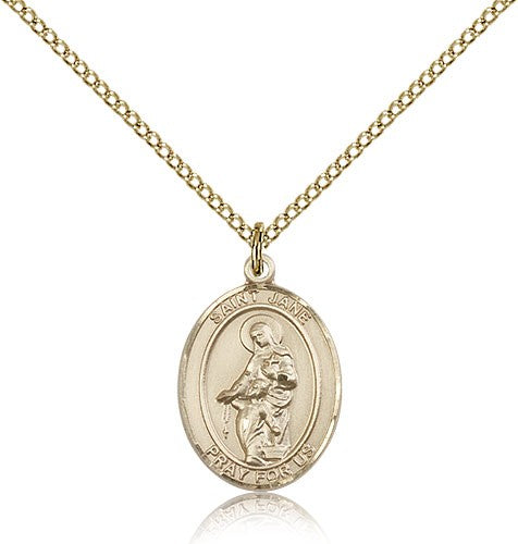This St. Jane of Valois Pendant is made of gold filled and is approximately the size of a nickel. The jewelry pendant is paired with an 18 inch gold filled light curb chain as pictured. All medals are gift boxed in a beautiful blue velvet hinged jewelry gift box.