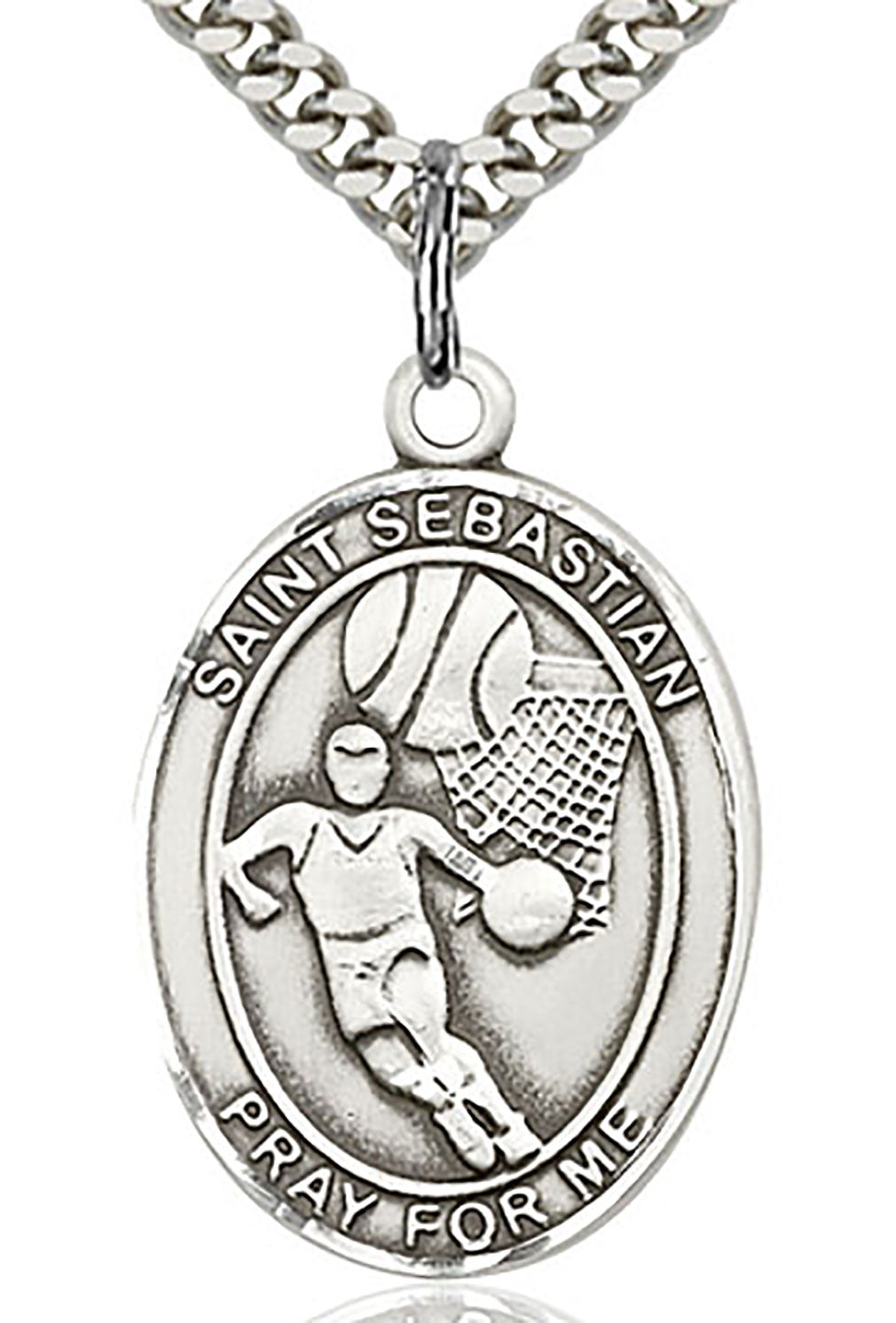 St. Sebastian Basketball Medal, Sterling Silver, Large