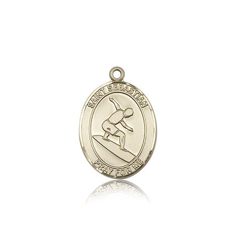 St. Sebastian Surfing Medal, 14 Karat Gold, Medium