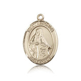 This St. Veronica Pendant is made of 14 Karat Gold and is approximately the size of a quarter. The jewelry pendant is sold individually and does not come with a chain. All medals are gift boxed in a beautiful blue velvet hinged jewelry gift box.