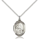 This St. Veronica Pendant is made of sterling silver and is approximately the size of a nickel. The jewelry pendant is paired with an 18 inch sterling silver light curb chain as pictured. All medals are gift boxed in a beautiful blue velvet hinged jewelry gift box.