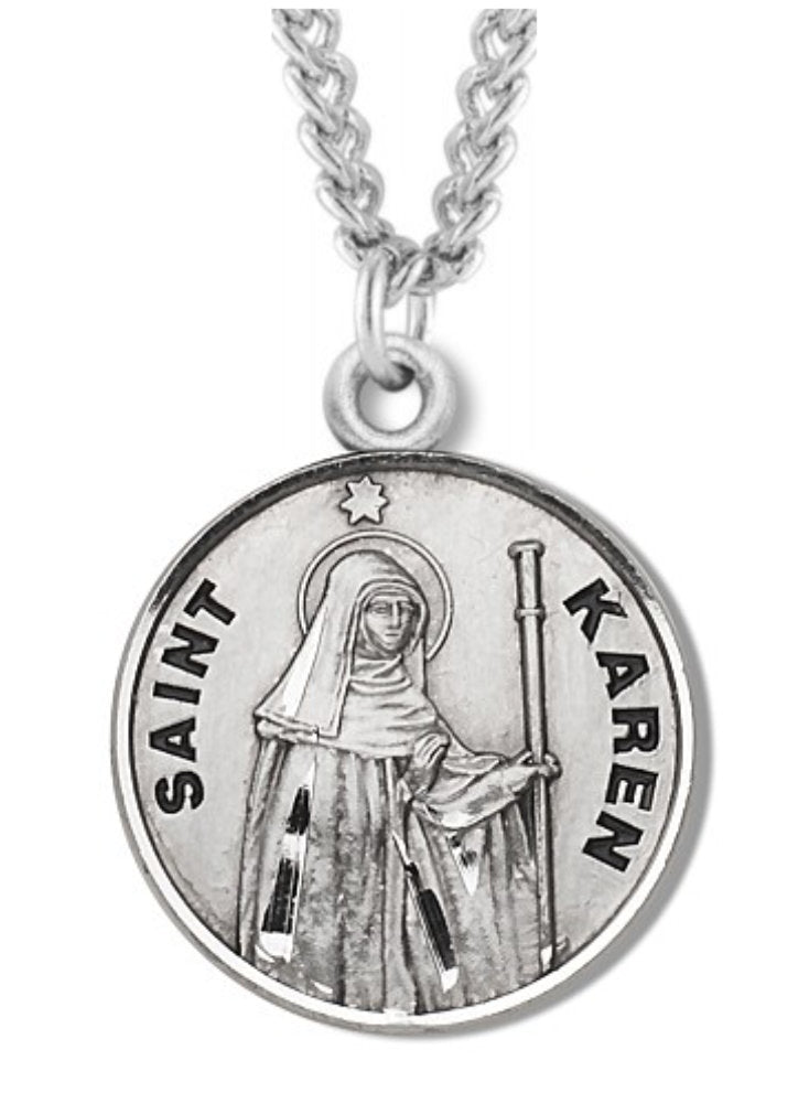 Women's St. Karen Necklace Round Sterling Silver with Chain Options